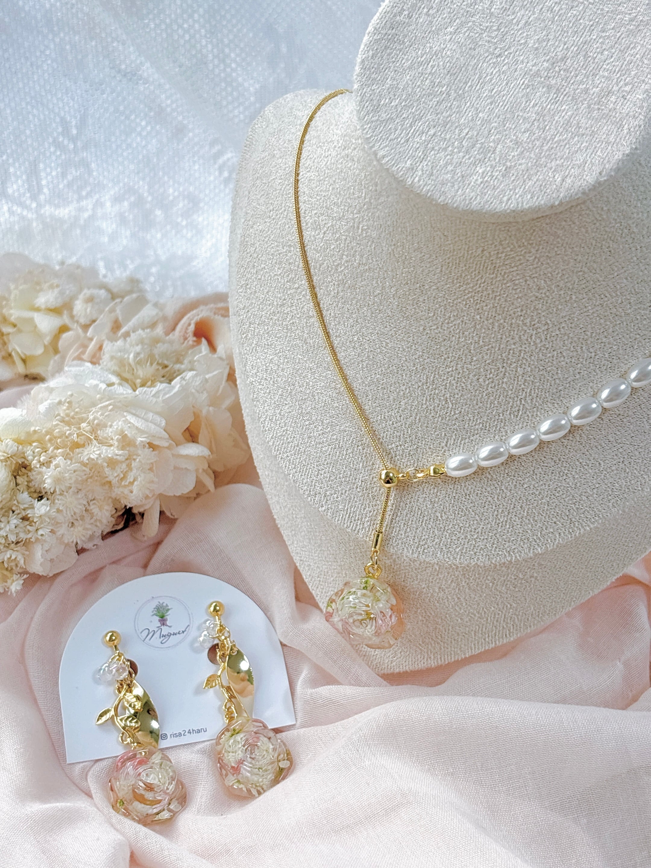 【Rose ピーチファズ】淡水パール♡ネックレス